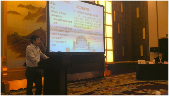 在專題報告中康德忠董事長以三峽大壩為例,詳細(xì)闡述了大壩接縫灌漿剩余細(xì)縫化學(xué)灌漿的施工技術(shù),在國內(nèi)水工建筑物接縫灌漿領(lǐng)域尚屬首例;此外還重點介紹了洗縫劑的特性及應(yīng)用,獲得了參會人員的好評。通過本次會議成功的宣傳了公司對外形象,提升了公司的知名度。