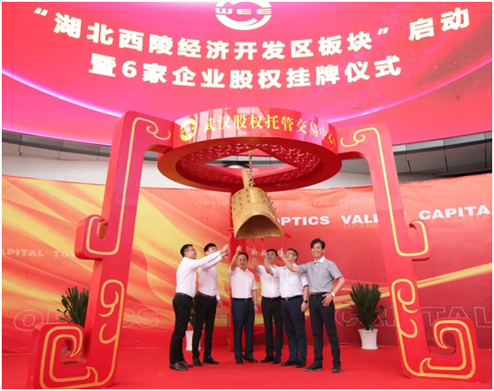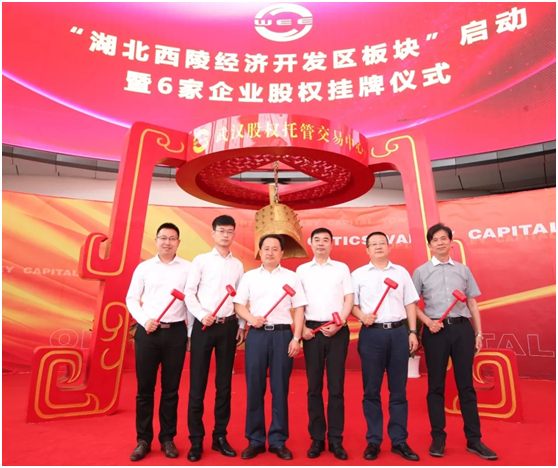 宜昌市西陵區(qū)委書記盧斌,區(qū)委常委、常務(wù)副區(qū)長(zhǎng)梅軍,區(qū)黨組成員、湖北西陵經(jīng)濟(jì)開(kāi)發(fā)區(qū)黨工委書記、管委會(huì)主任錢東與“瑞派爾”、“寧達(dá)環(huán)保”、“永興機(jī)電”等企業(yè)代表一起上臺(tái),為企業(yè)股權(quán)掛牌鳴鐘開(kāi)市