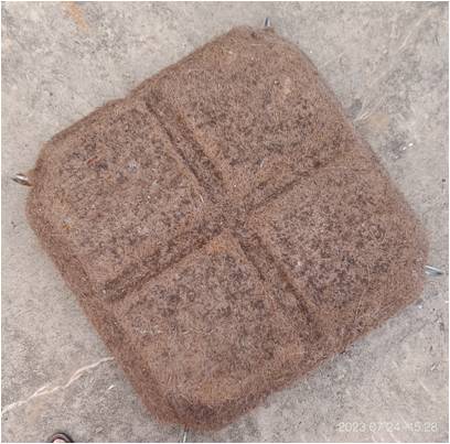 由多孔種植顆粒和粗骨料制成的多孔隙混凝土模塊,并在內(nèi)部預(yù)先播撒植物草種子,然后在表面包覆一層15 mm~40 mm厚的植物纖維墊,形成一種裝配式護(hù)坡構(gòu)件。生態(tài)砼模塊在防止水土流失、及時(shí)有效恢復(fù)邊坡植被,提高邊坡穩(wěn)定性等方面具有其它混凝土砌塊所不可替代的功能。